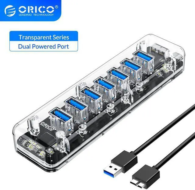 Dual-Port Power Supply USB3.0 Transparent HUB added a micro USB input Port to turn it into a powered hub to support the power needs of hard drives and USB stuff that requires more power. Two independent power supply interfaces ensure that large-capacity mole devices are transmitted and connected more stable.You can use any Micro USB cable ( Not included) for power.