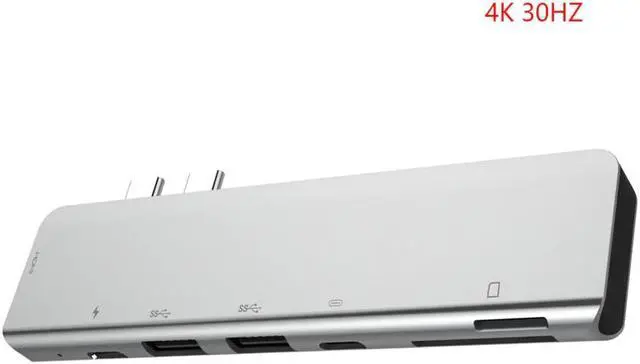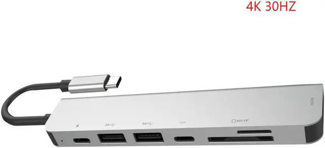 Descripition The PD just used for charging, not transfer.HD transmission, 4K can only displayed if the connnect cable is 4K.USB-c is only suitable for transmission. If you want to connnect display frequency, you can only use HD. Premium aluminum design: high-end material adopted to ensure high durality and best-in-class experience; pairs with your upscale laptop perfectly.Travel ready: extremely compact design makes it easily portable and saves desktop space.It also comes with /TF Card Reader, so you have extra storage room to spare.Highest definition & streaming: Start streaming the highest resolution videos and shows via its 4K HD port. Need a 4K connect cables.(Not include) The USB 3.0 Ports support faster transfer up to 5Gbps, quick files sharing, no more waiting. Specification:The Normal speed measurement is 80 to 100Mbps.USB3.0:Hight speed USB3.0 transmit 5GB/S,Power supply up to 4.5W max.USB C Female port: 20V@3A,Support max 87W power adapter,USB C male:copatible with thunderboil 3, Make sure that the host USB-C port on your device complies with the USB3.0/3.1. / TF card reader: and TF cards can work simultaneously, read and write speed depands on cards' quality.Can read two cards at the same time only when used on a computer.Material: Aluminum alloy.Color: grey.Size: show as pictures.