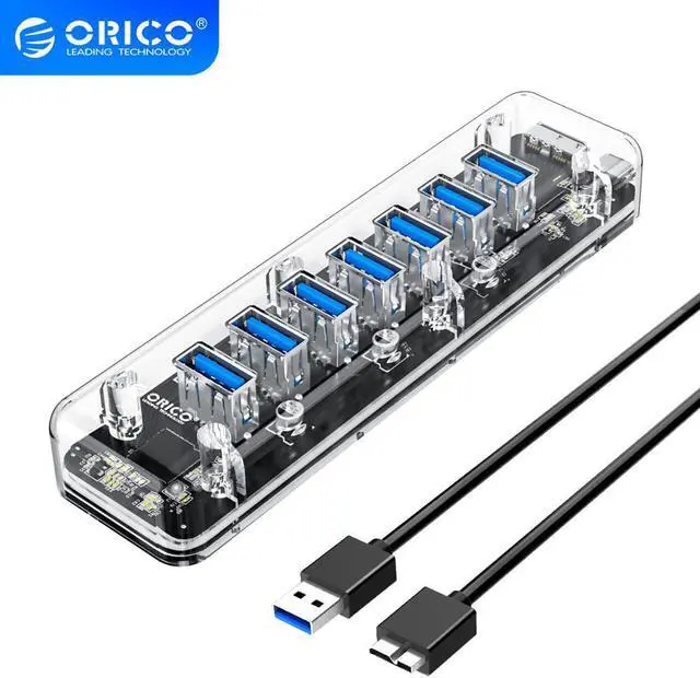 Dual-Port Power Supply USB3.0 Transparent HUB added a micro USB input Port to turn it into a powered hub to support the power needs of hard drives and USB stuff that requires more power. Two independent power supply interfaces ensure that large-capacity mole devices are transmitted and connected more stable.You can use any Micro USB cable ( Not included) for power.