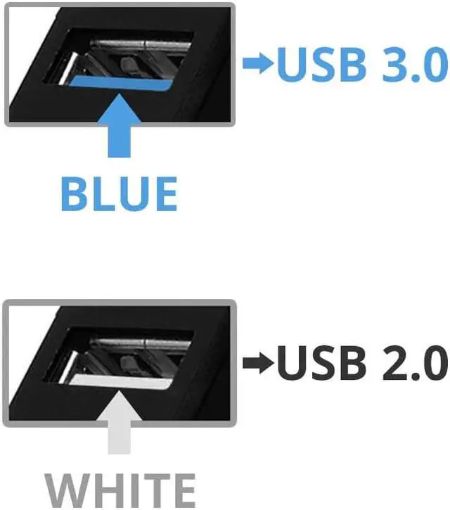 How to distinguish 2.0 and 3.0 port ? 1. USB3.0 speed is 5 Gb / s, while USB2.0 speed is 480 Mb / s.