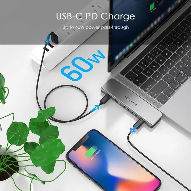 60W Power Delivery: With a extra USB-C PD charging port with maximum 60W power pass-through to charge your MacBook Pro\Air and stablize the peripherals you plug in. (Note: For better performance, connect the power before plug in hard drives)