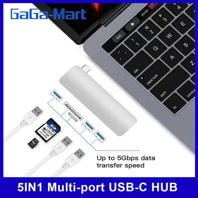 5IN1 Multi-port USB-C HUB to USB 3.0 Type-C Converter Adapter TF Card Reader Plug & Play