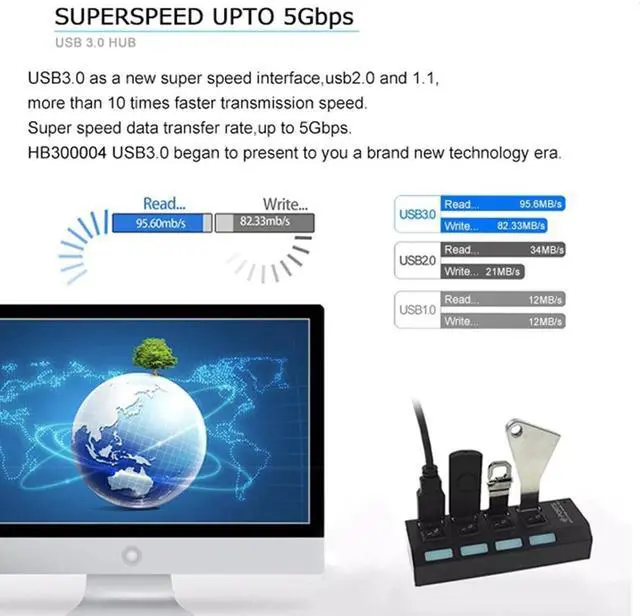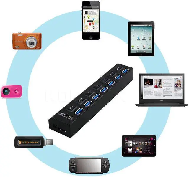 7-port USB 3.0 hub with super speed transfer rate up to 5Gbps