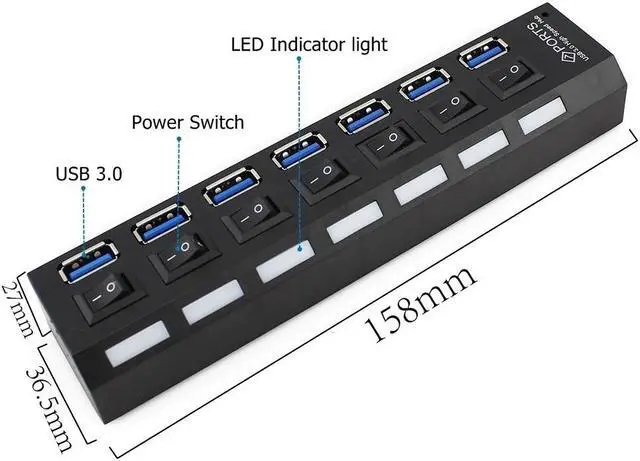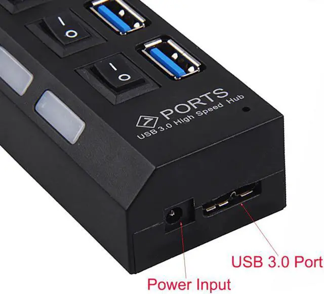 USB 3.0 Hub USB-A To 7 Port USB3.0 With DC 5V/2A Power Supply LED ON/OFF Switch USB C Splitter Adapter For PC Laptop Mouse