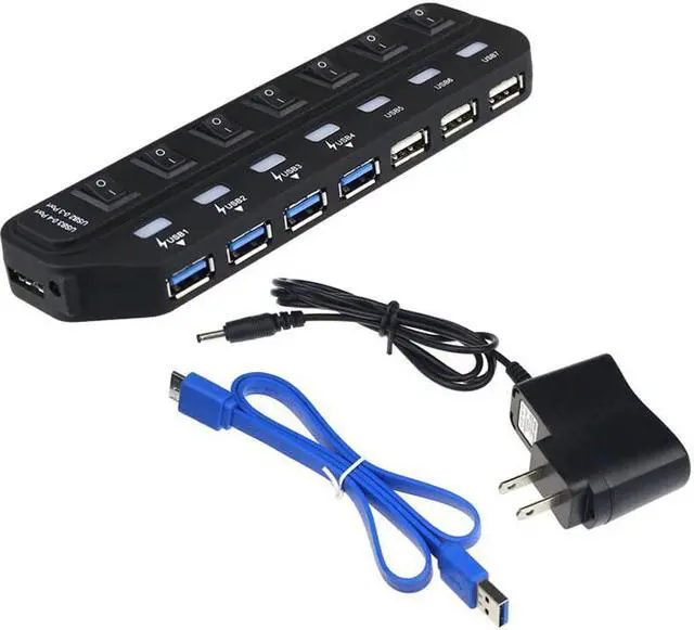 sale 7 Port Super Speed 5Gbps USB 3.0+USB 2.0 HUB With Power Adapter For PC Laptop