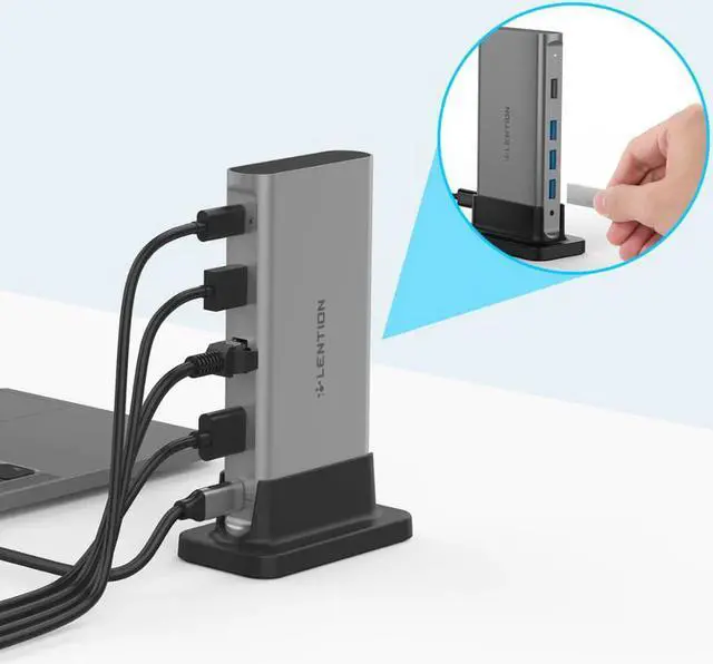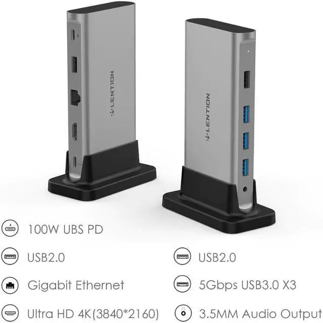 3Power Delivery - The Type C charging port can pass through up to 100W power to the USB Power Delivery Laptop, and provide extra power to USB peripherals for better stality. (Connect this port to charger first, if you have multiple high power devices)