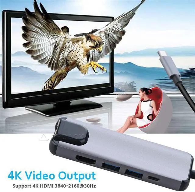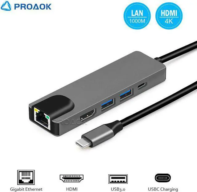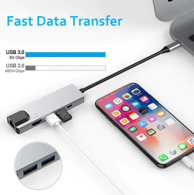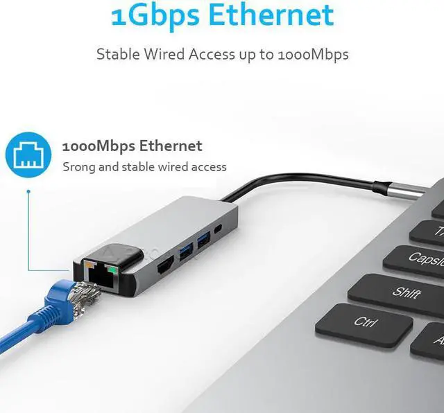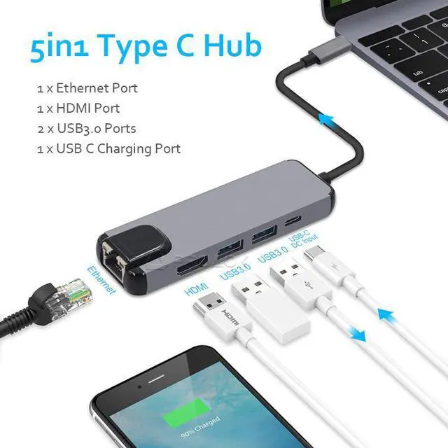 5in1:Transform 1 -C port into 2 standard 3.0, 1 HDMI,1 -C charging port and 1 Ethernet port.