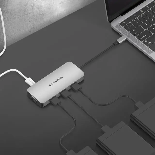 Interface:USB Type C Male to USB 3.0 x3+4K HDMI+1080p VGA+RJ45+Power Delivery+ Card Reader+TF Card Reader
