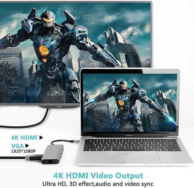 C to HDMI/VGA: Extend your MacBook to HDMI-enabled TV in Max 4K UHD 3840×2160@30Hz. HDMI and VGA outputs can be used simultaneously. Experience crystal clear 4K HDMI video on compatible 4K monitors for brilliant high-resolution display.Note: Device must support "DisplayPort Alternate Mode"(DP Alt Mode) via -C,not compatible with devices which do not support the protocol DP Alt Mode.
