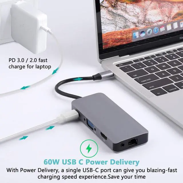 ONE FOR ALL: The ULANEN 9 in 1 Hub provides virtually all of the connectivity you'll need: 2 3.0 ports, separate TF/ slots, 4K (at 30 Hz) HDMI capalities, VGT Port, type C port, 3.5mm Audio jack and Gigat Ethernet. It also allows you to charge your laptop through a separate -C power input
