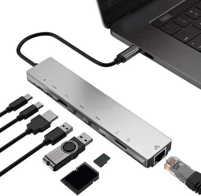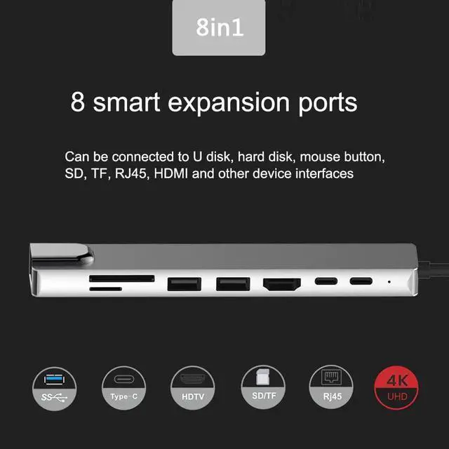8 in 1 Type-C HUB USB-C to 4K HDMI 2 USB3.0 RJ45 PD TF Memory Card Converter Adapter Extension Docking Station for PC Notebook