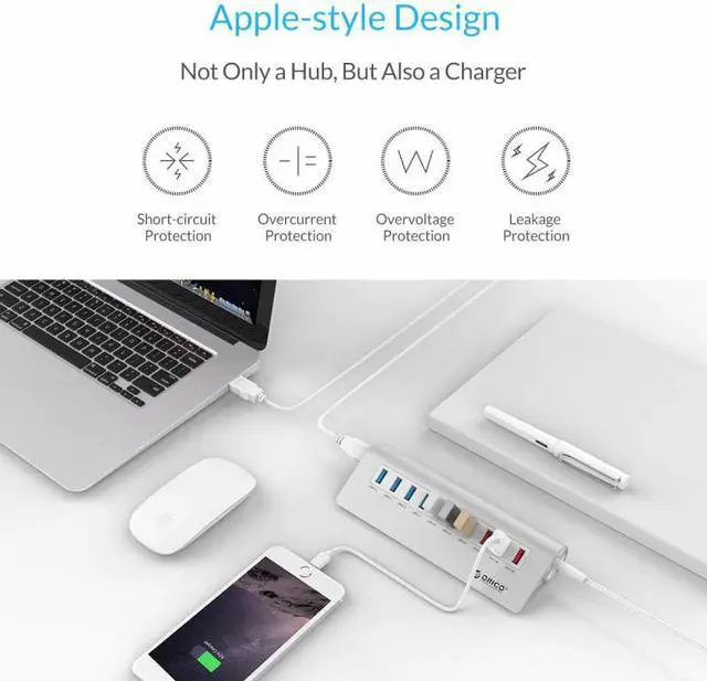 Sweet design : set USB ports on the back, hide the cables, making your desktop cleaner. USB 3.0 hub saves space effectively.