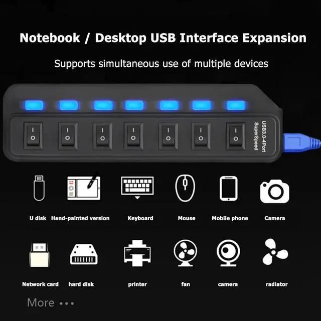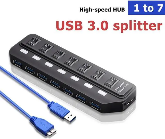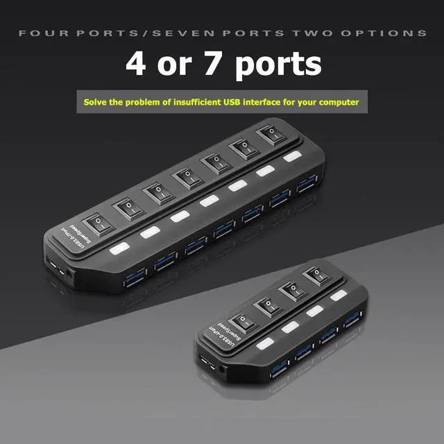 4/7 Ports USB 3.0 Hub Multi USB Splitter with Individual Power Switches for Laptop Desktop PC Computer Accessories