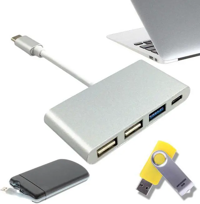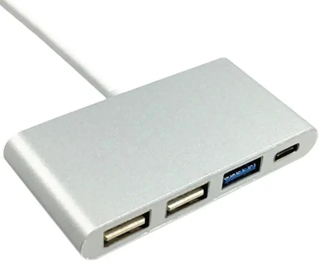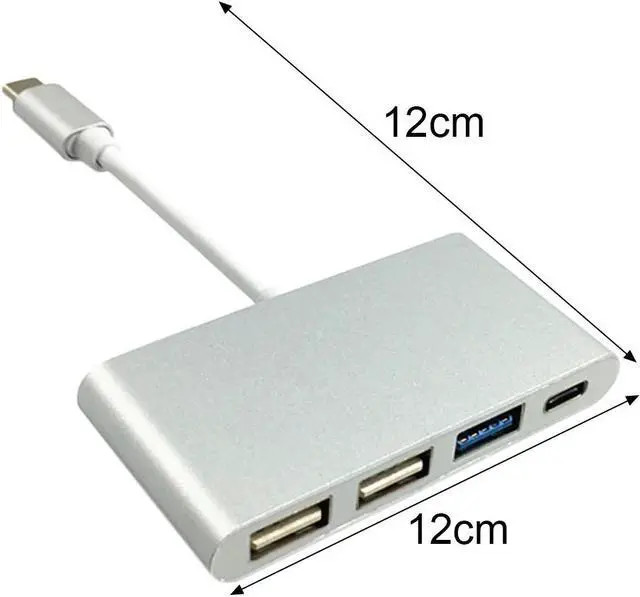 Features:100% brand new and high quality!Small size, easy to bring it out.Type-C to Type-C, 3 USB Ports, one USB3.0 and two USB2.0 ports.Support for charging and transmission.Support 5V/3A and 14.5V/2A output.USB3.0 port can reach up to 5Gbps.Built in intelligent chip, let it work steadily.Plug and play.Specicications:Type: Type-C to Type-C and 3 USB Ports Hub AdapterOuput: DC 5V 3A, 14.5V 2A.Material: Aluminum alloy+PVCSize: 12*12*2cmColor: silver and whiteCompatible with: Type-C devices, like for Macbook, For Googel for ChromebookPackage includes:1* Type-C to Type-C and 3 USB Ports Hub Adapter