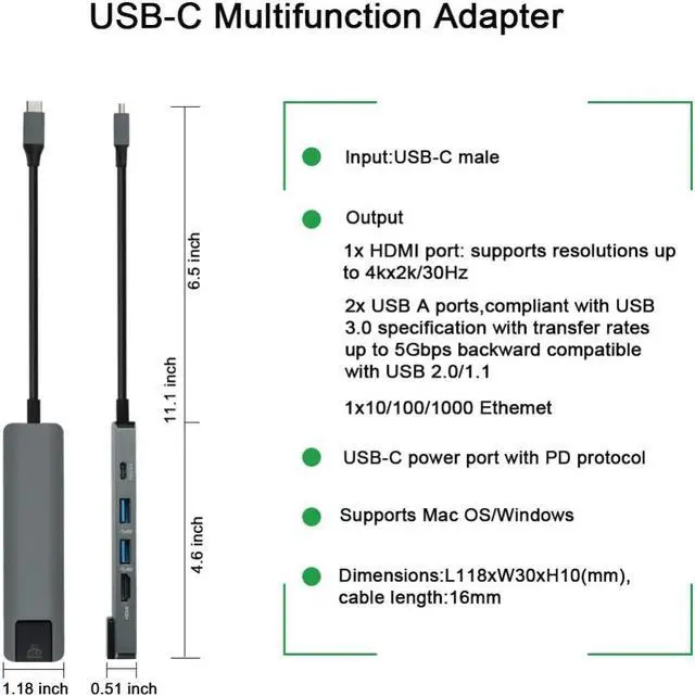 Note: 1. Make sure that the host USB-C port on your device complies with the USB 3.0 / USB 3.1 specification. Compatible with USB 2.0 Type-C device. 2. To use the HD output port, the host USB-C port from your device must support DisplayPort Alt Mode. 3. To use the Power Delivery function to power and charge a connected USB-C laptop, the host USB-C port from your device must support USB Power Delivery. The USB-C input charging port cannot be used for transmission. 4. Please do not rely on the USB-A ports for charging your phones, tablets or other devices. 5. For a stable connection, do not use this hub with high-power devices. It supports one hard drive max. 6. Not support charging for laptops and tablets via the PD USB-C charging port. 7. Not compatible with tablets and Zenbook UX330UA. 8. Charging Power Delivery enabled USB-C laptops via the PD USB-C charging port requires using your 55W or above original power adapter.