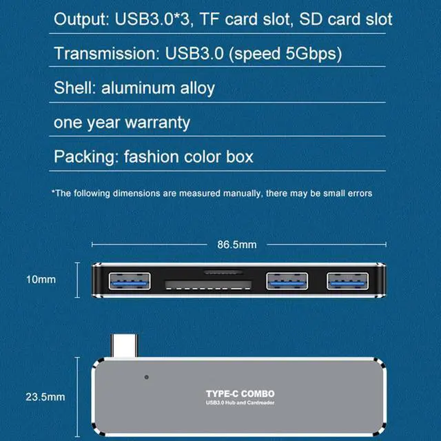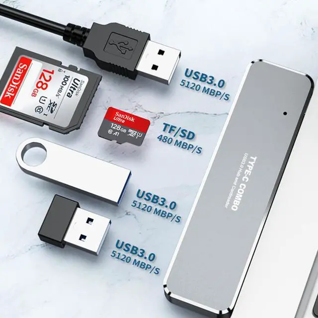 -C USB 3.0 to 4K HDMI USB 3.0 TF Card Reader 5 in1 Hub Adapter
