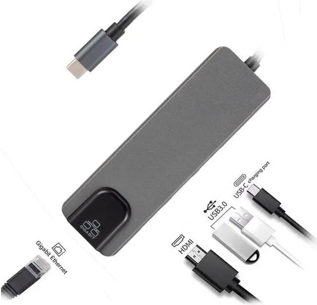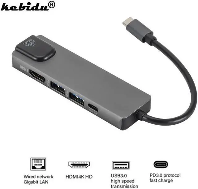5 in 1 USB Type C HUB HDMI 4K USB C Hub to Gigat Ethernet Rj45 Lan Adapter for Mac book Pro Thunderbolt 3 USB-C Charger Power