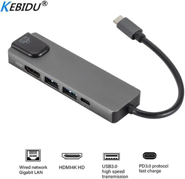 5 Multiport USB C Hub: USB-C charging port for power delivery, USB C to HDMI output, 2 USB 3.0 ports, Gigat Ethernet port (RJ45 port) functional and versatile.
