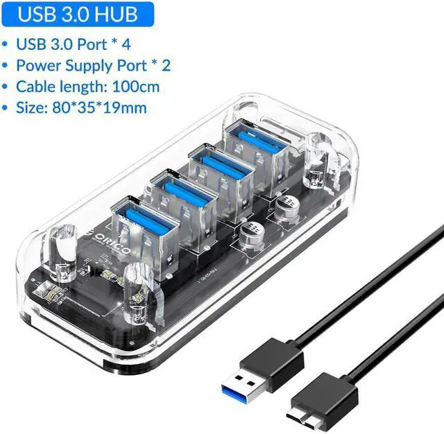 Dual-Port Power Supply: USB 3.0 Transparent HUB added a micro USB input Port to turn it into a powered hub to support the power needs of hard drives and USB stuff that requires more power. Two independent power supply interfaces ensure that large-capacity mobile devices are transmitted and connected more stable. You can use any Micro USB cable ( Not included) for power.