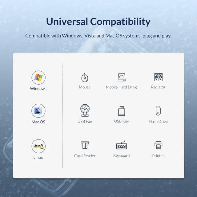 USB 3.0 Port Expansion: This hub extends the USB type A connections (5Gbps) to your PC? Speed your working tempo with extra ports. Support Windows /Mac OS /Linux system.