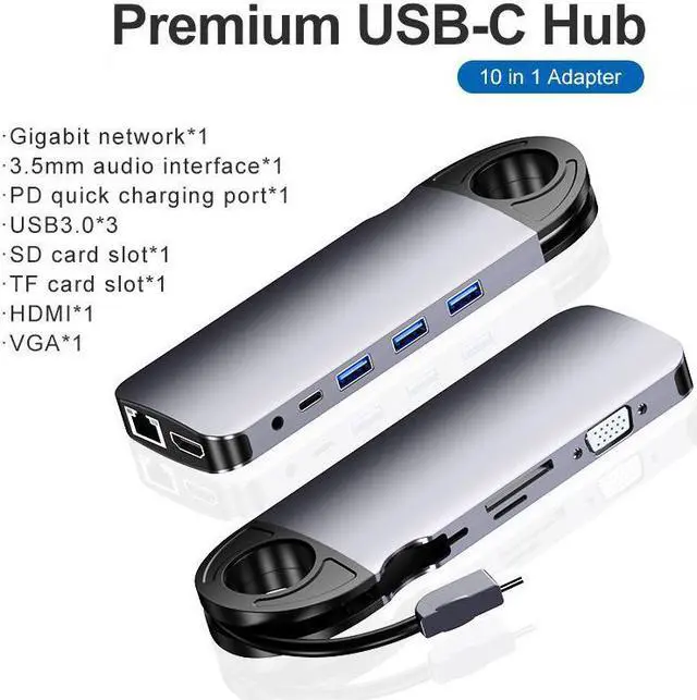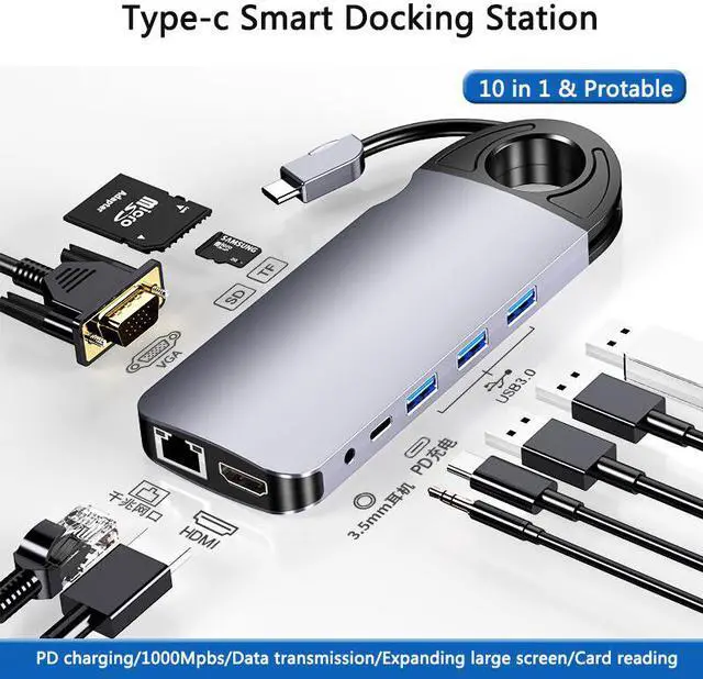 Weastlinks 10 in 1 USB HUB USB-C To HDMI/VGA/RJ45 Adapter Type-c USB 3.0 Hub PC Mobile Phone Docking Station