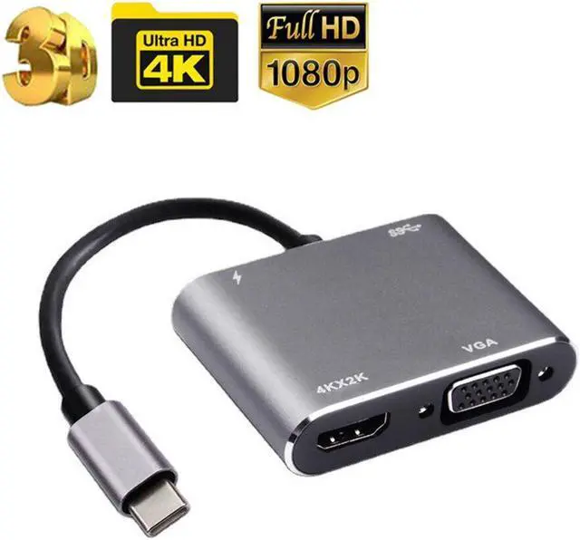Support 4K Max-USB C to HDMI-compatible VGA Adapter Supports video resolution up to (4K * 2K) at 3840 * 2160P / 30Hz. when use HDMI-compatible alone, It support a large screen liquid crystal TV or display compatible with 4K max output.
