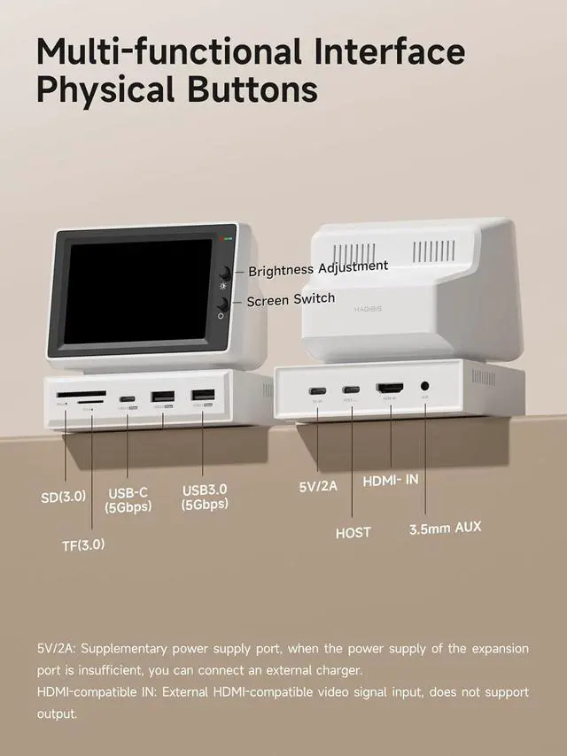 Multiple displays: Hagibis IPS mini docking station can display different images, such as time, weather, temperature, dynamic wallpaper, electronic photo albums, video playback, floating texts, computer performance monitoring, etc. More fun is waiting for you to unlock with us