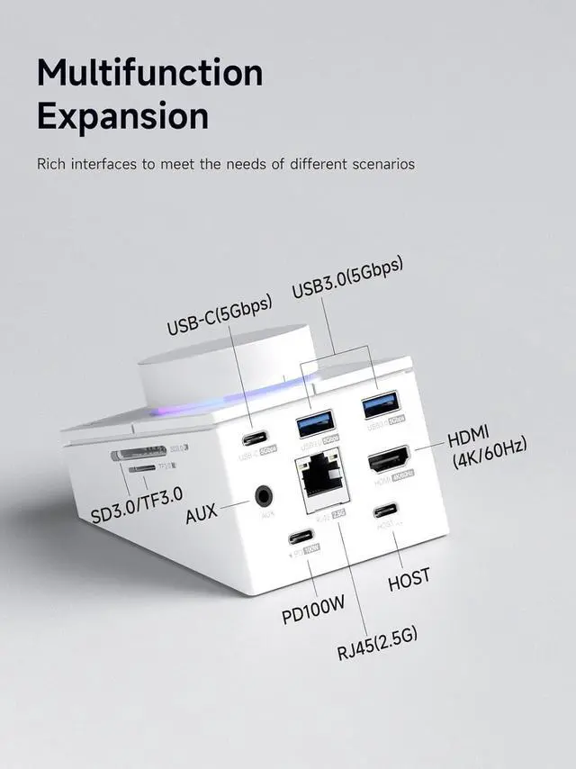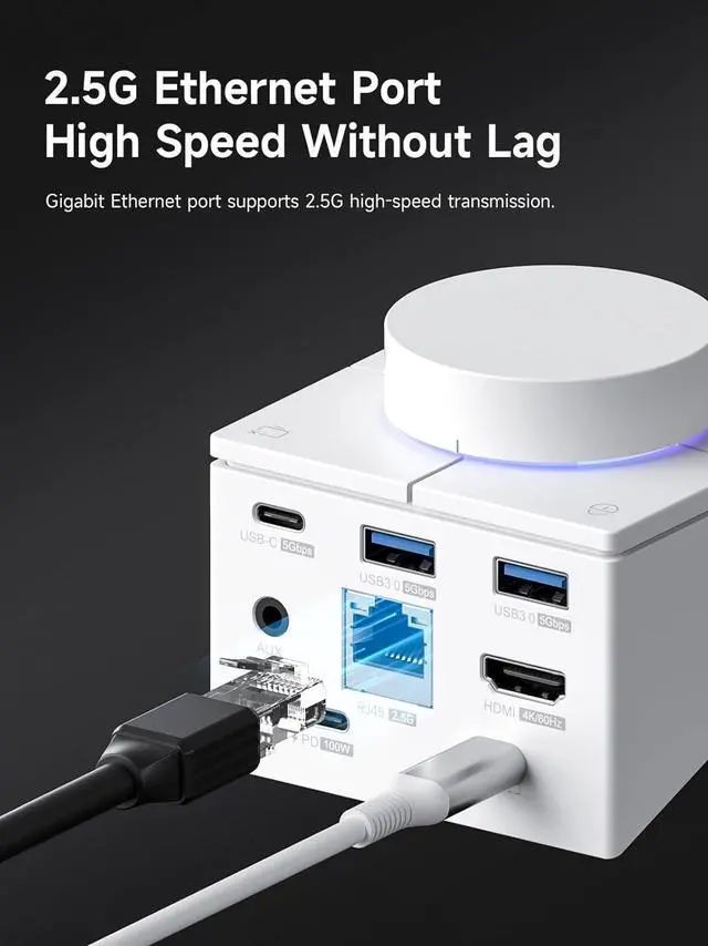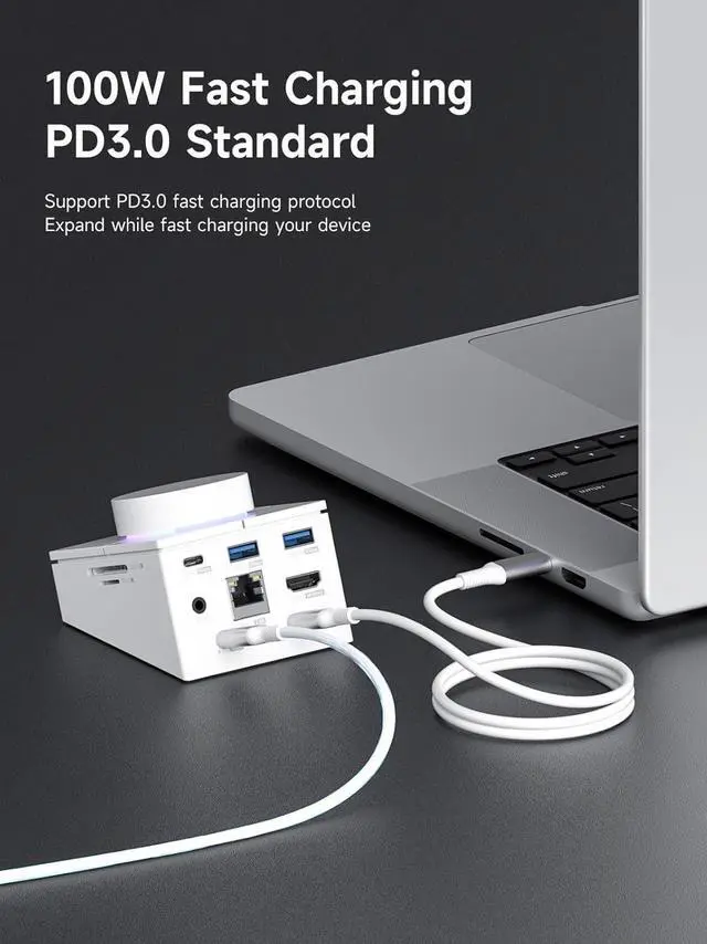 Unique Integrated USB-C Docking Station: Hagibis innovated and developed this multi-function USB C Hub, which integrates 9-in-1docking station & RGB Light & Volume Knob & Shortcut Buttons, make your docking station different from the rest, add color to your desktop