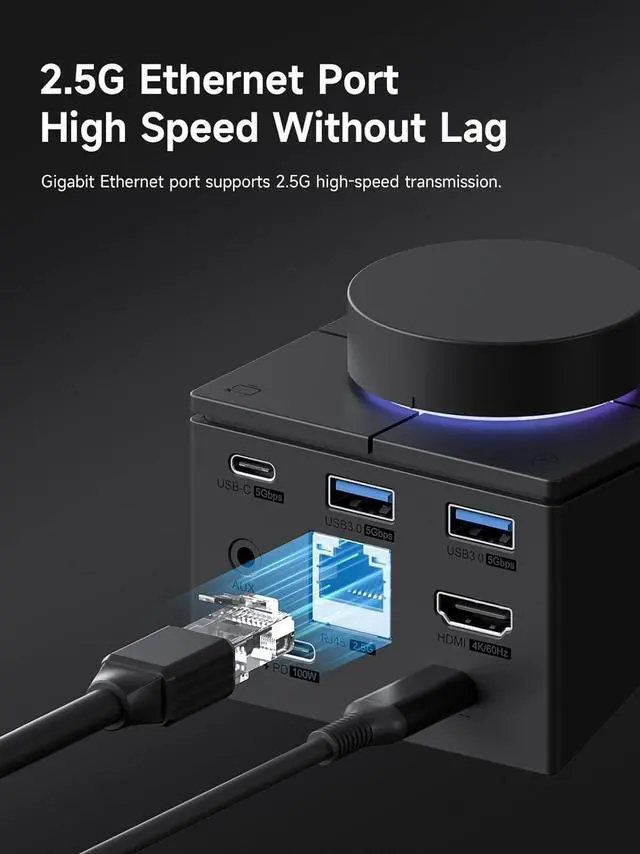 Hagibis Knob USB C Hub with Shortcut Buttons, RGB Type-C Docking Station with 4K@60Hz HDMI, 100W PD, 5Gbps USB-C, 2 USB3.0, 2.5G RJ45, AUX, SD3.0, Micro SD3.0 for MacBook iPad Pro Laptop (Black 2.5G)