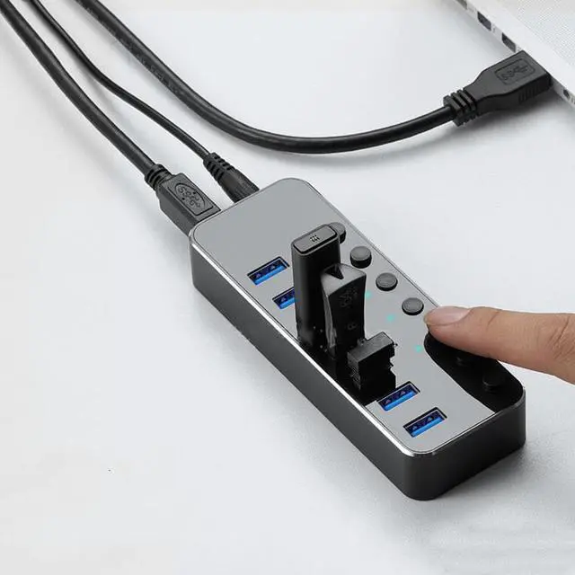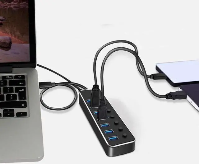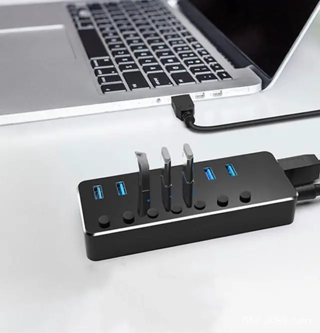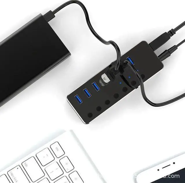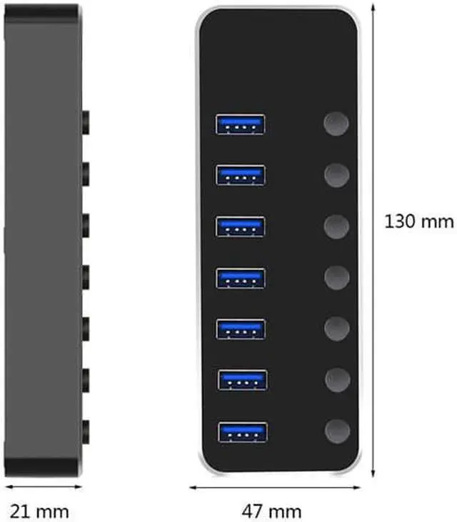 USB 3.0 7 ports Hub Up to 5 Gbps data speeds Built-in surge protection Compatible with USB 2.0 / 1.1 No drivers, Plug & Play Compact size and portable design Support hot-swapping LED Indicator