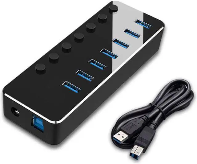USB 3.0 Hub with LED Indicator High Speed USB 3.0 7 Port Hub Splitter Up To 5Gbps, Plug and Play, Security&Portable For iMac, MacBook Air, MacBook Pro, MacBook, Mac Mini, PC, Laptops