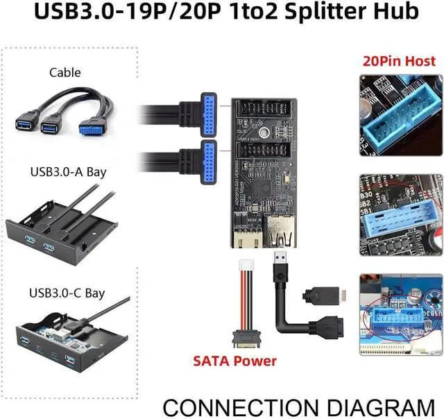 Versatile Compatibility: The dual USB 3.0 20pin output is compatible with various devices like front panels, cables, USB hubs, card readers, and more.