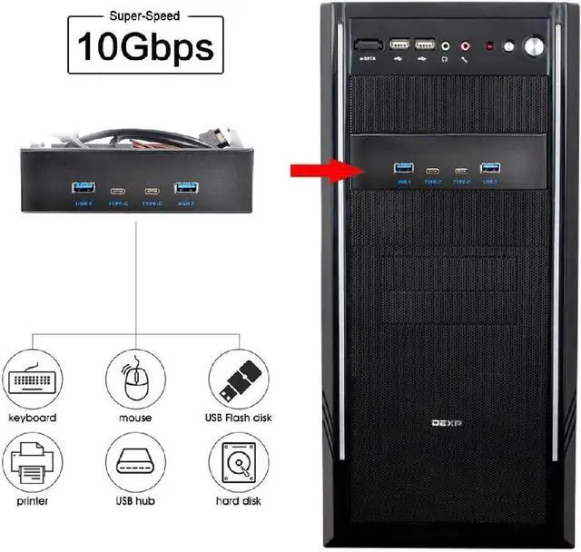 Compliant with USB Base Specification 3.1/3.0/2.0, USB Type-A interface and 5.5inch bay of PC front panel,Compliant with USB 3.1 Super-Speed (10Gbps,5Gbps), USB 2.0 Hi-Speed (480Mbps), USB 1.1 Low-Speed (1.5Mbps)
