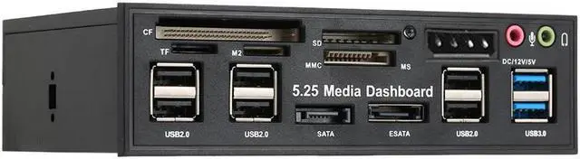 Packagelist: 1 * 5.25" Internal SATA e-SATA two USB 3.0 Six USB 2.0 Five-in-one Card Reader Multi-Function Front Panel Media Dashboard 4 * Screw 1 *