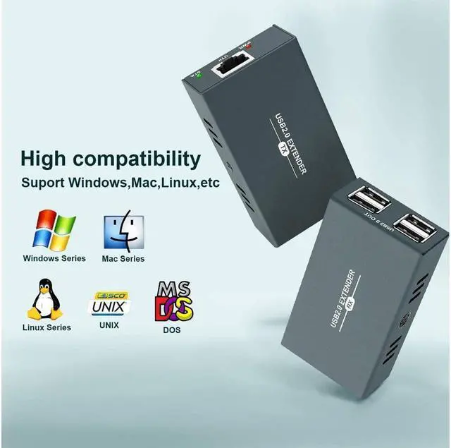 High CompatibilityUSB over Ethernet supports all operating systems: Windows, Mac OS, Unix, Android, Linux etc; High compatibility with USB 1.1 and USB 2.0 peripheral devices. Support keyboards, mouse, webcam, USB microphone, printer, scanner, etc.
