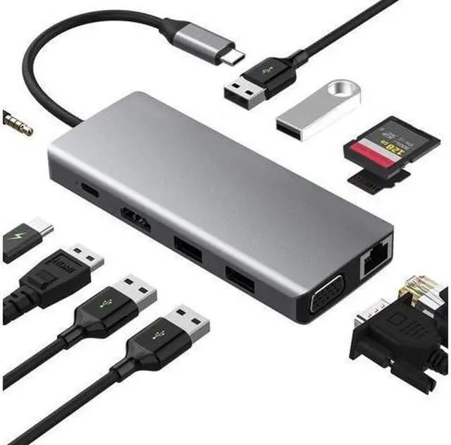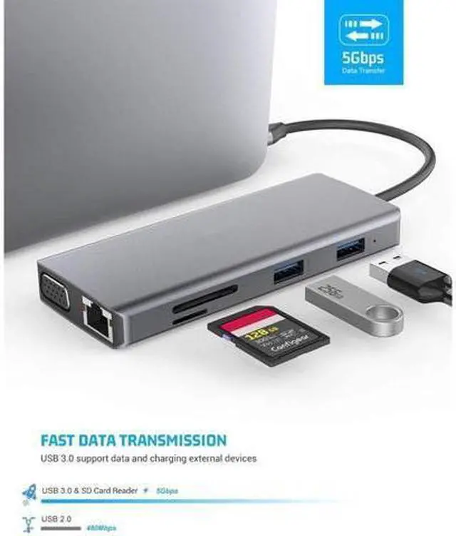 [11 in 1 USB C Hub] Configear Multiport USB C adapter comes with all the necessary functions you need in daily life and general work, Including a HDMI with vivid 4K video output that transfers media in seconds with 3D effect, VGA, Ethernet, 92W PD 3.0 Charging, SD/TF card reader, 3.5 mm Audio/mic 2-in-1 jack, 2USB 3.0, 2USB 2.0, allowing you to connect the keyboard, mouse, USB driver, external Disk or wired headset to your USB-C devices.