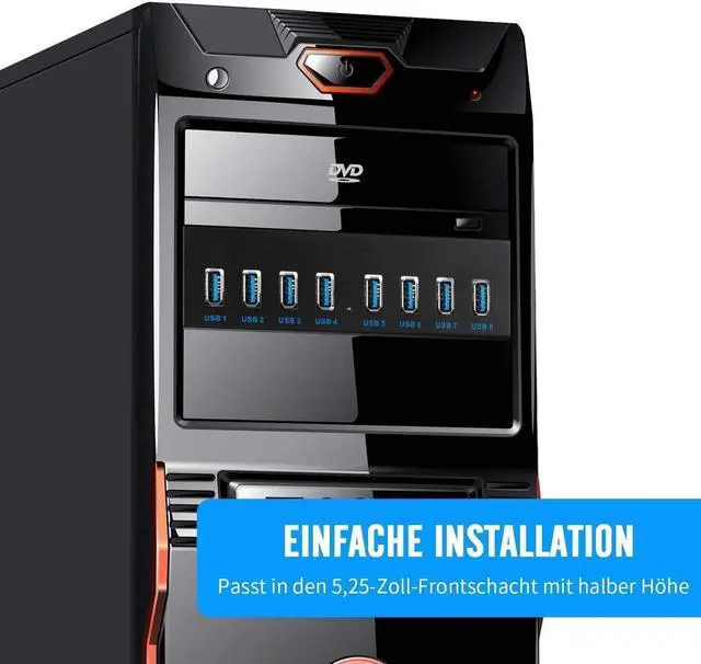 1. Simply connect it to the motherboard using a 19-pin socket on the control panel. As a result, eight front USB 3.0 interfaces are installed in a standby optical drive position.
