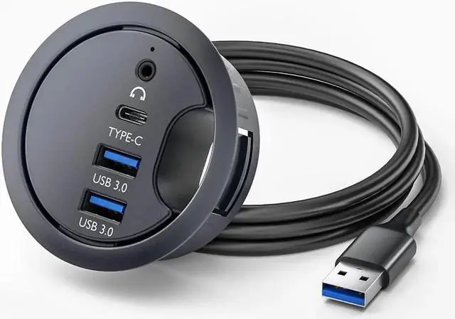 The grommet USB hub allows easy access to 2x USB 3.0 ports, 1 x Type C Port & 1x 3.5 mm audio port connection.