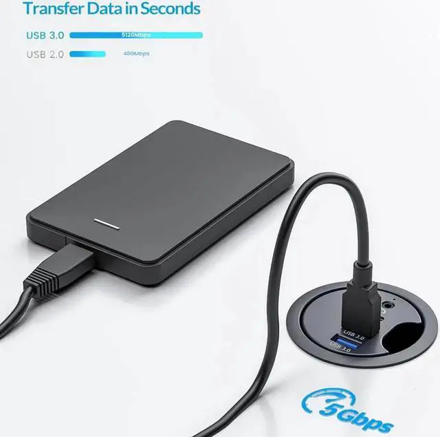 Innovatively mounts on the grommet hole, to make full use of space for desks, tables, counter tops.