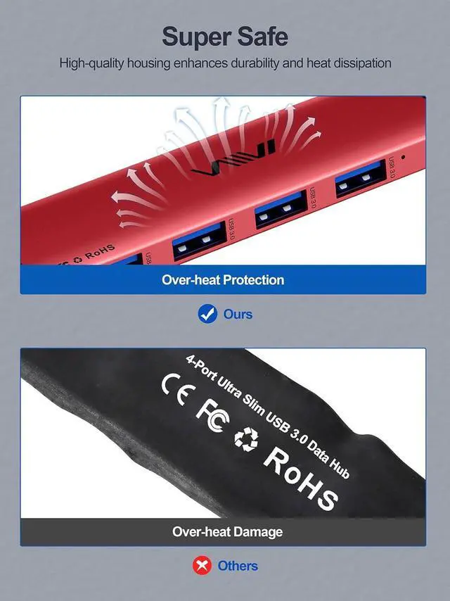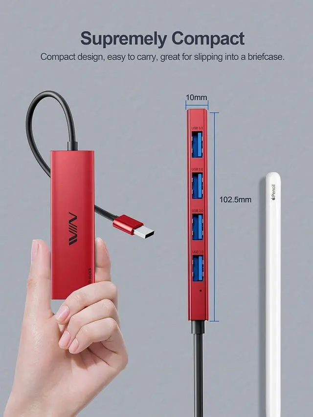 Slim and Easy to Carry: Ultra-thin 1cm body, easy to carry. Humanized design takes into account the size of most flash drives on the market and the space between each USB port. Insert 4 flash drives at the same time without worrying about space.