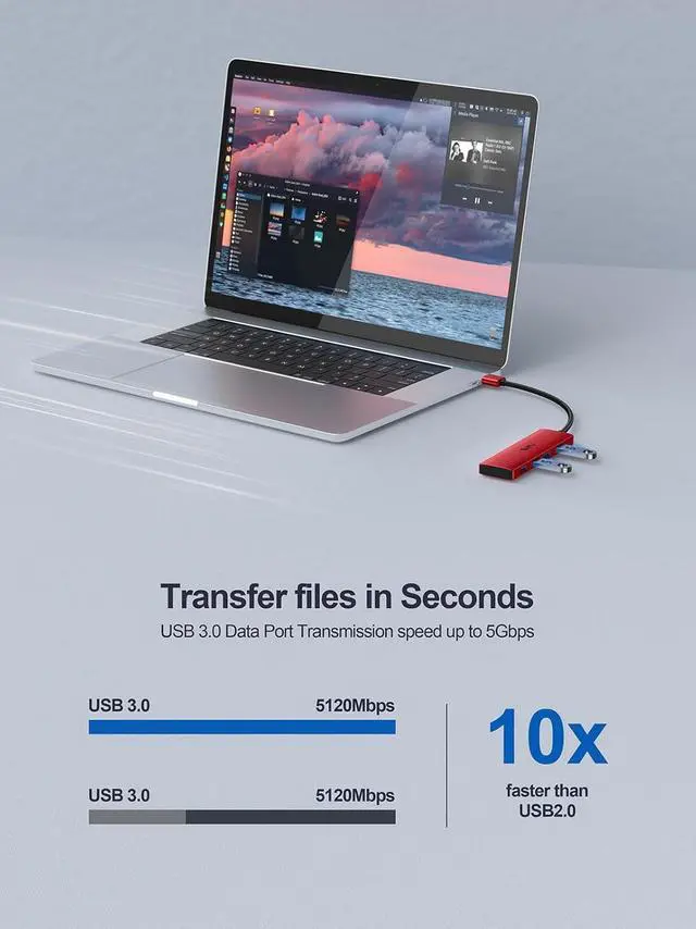 High-Speed Data Hub: The 4-port USB distributor utilizes high-efficiency USB 3.0 to provide stable data transfers of up to 5Gbps (USB 3.0) and supports transfer speeds of 480Mbps (USB 2.0) and 12Mbps (USB 1.1).***This device is only used for data transmission and cannot be used to charge the device***