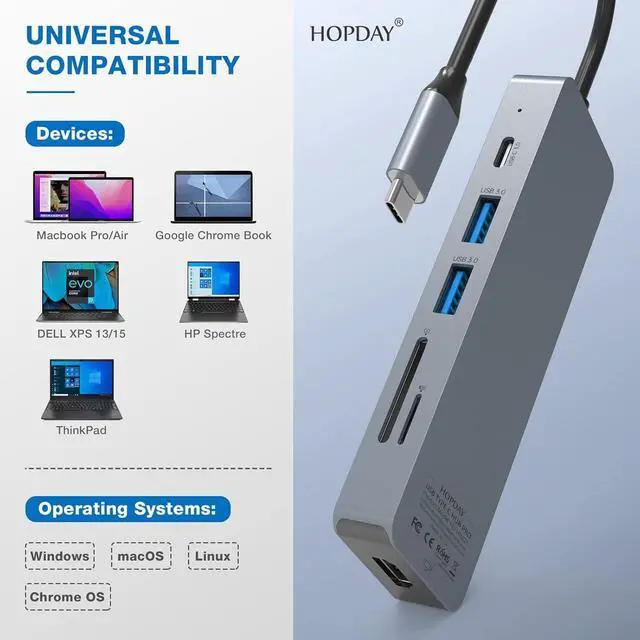 Widely Compatible The USB C hub multiport adapter is compatible with new MacBook, MacBook Pro 2021/2020/2019/2018/2017, Macbook Air 2020/2019/2018, Dell XPS 13 15, Surface Go/Book 2, ASUS ZenBook3, and more full-functional type-c devices. The portable, heat-resistant design is ideal for use at home, at work or on the go.