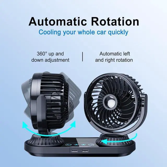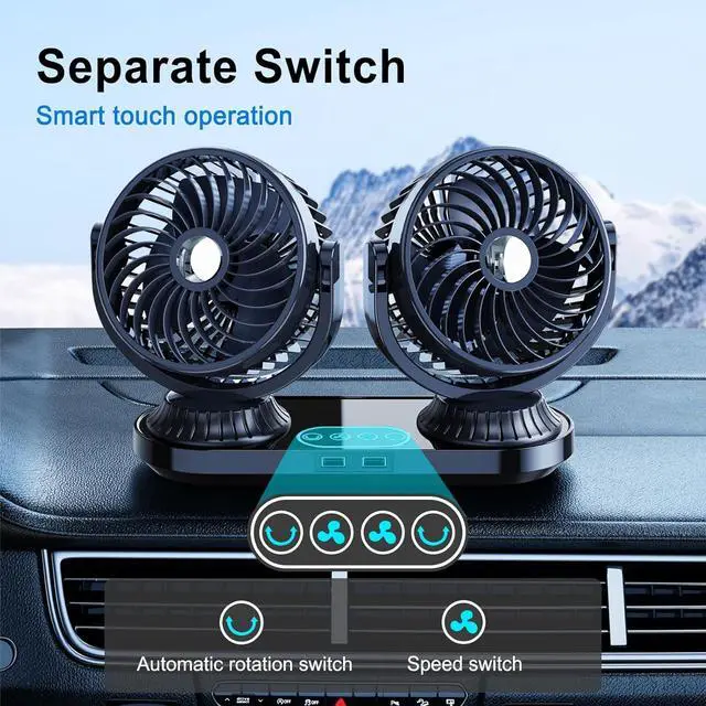 [ 12v/24v Intelligent Recognition ]--Newly upgraded xuenair universal 12v 24v portable fan for car with 270° horizontal auto oscillating and 360° vertical adjustment, effectively improve air circulation in your car and keep the whole car cool. With individual control buttons on the 12v cooling fan base, you can easily operate each fan head independently for a comfortable, intuitive control experience.