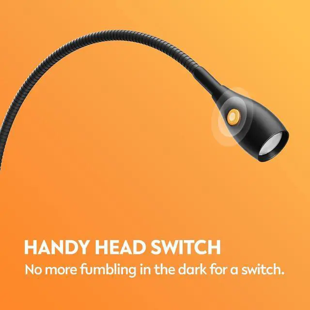User-Friendly Ergonomic Operation: Designed for convenience, the clip reading light features a push-button switch on the light head for easy, intuitive operationeven in complete darkness. No more fumbling for switches or awkward stretching, making it perfect for late-night lighting
