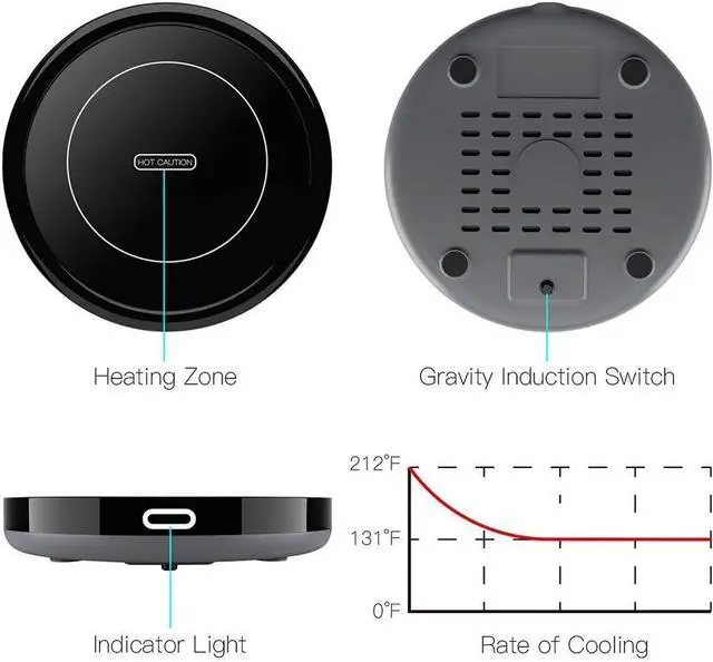 Easy to use: 19-Watt mug warmer for use with Coffee, tea, milk, hot cocoa or your candle wax, built-in gravity induction switch with indicator light, No need to turn it on/off manually, Warm your Beverage at a desirable temperature (131/55).