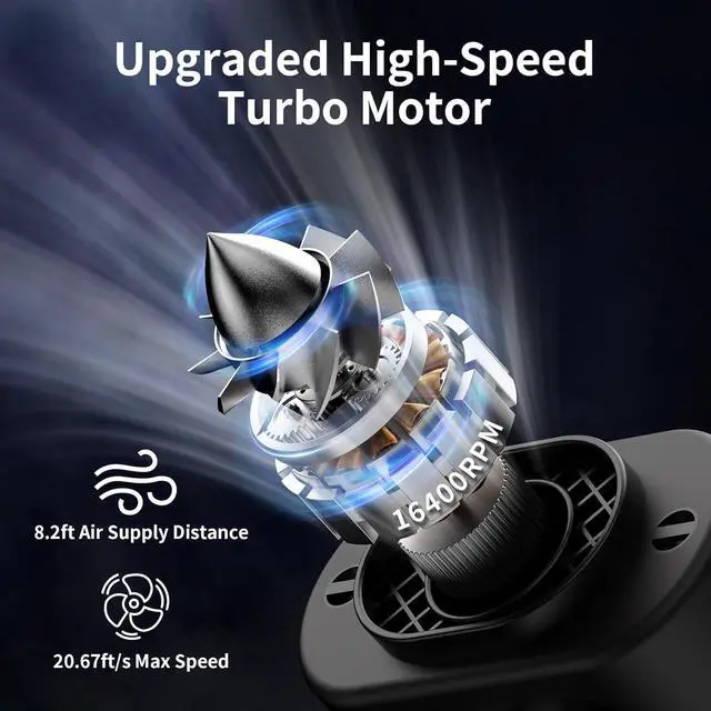 5 Levels of Powerful Wind Adjust: This electric USB fan has a high-speed turbine motor with a maximum speed of up to 14600RPM and blows at most 20.66ft/s strong airflow, air supply distance up to 8.2ft, cooling down instantly. 5-gear and adjustable wind speeds, from natural to strong, can be set to various modes according to your needs