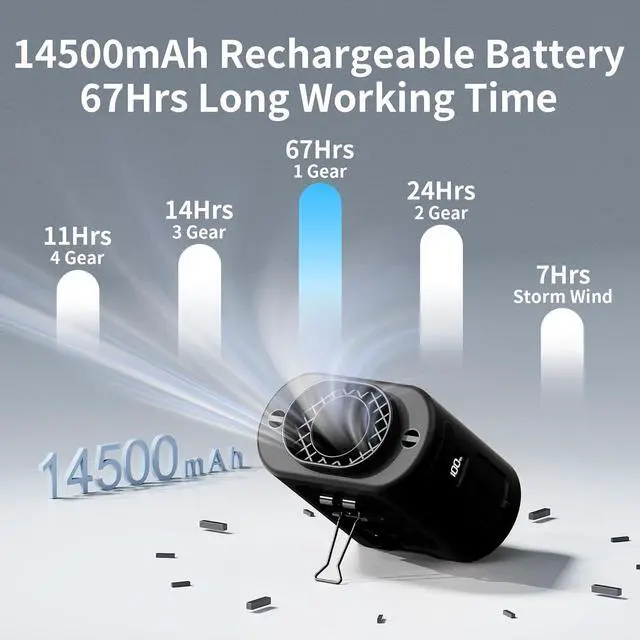 Long Lasting Working Time: Portable waist fan can be run continuously for up to 67 hours at low speed according to the wind speed and light mode, and takes 6.5 hours to charge fully. The portable waist clip fan can be used during charging. The maximum wind speed persists for 8 hours, whereas the minimum wind speed can endure for as long as 67 hours. Beat the heat all day long (No Standalone lithium batteries are sold with the product)
