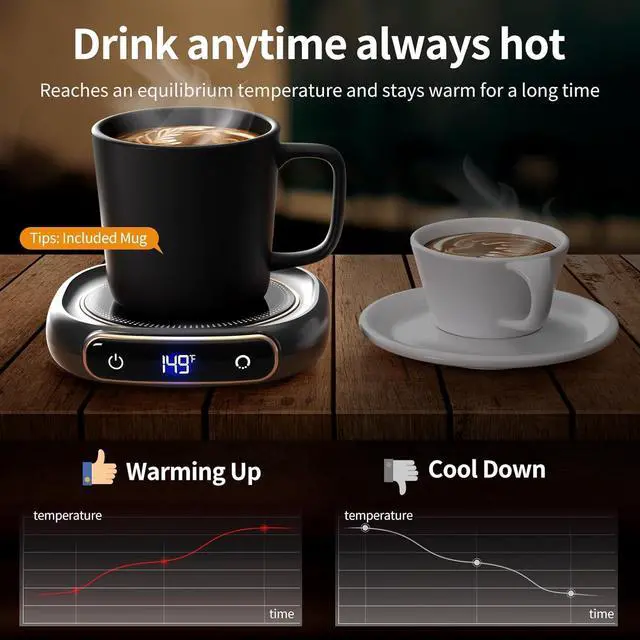 Adjustable Three-Temperature Setting: LERAT coffee mug warmer will keep your coffee at a perfect drinking temperature. You can control the temperature by tapping the button, keeping your coffee or milk up to 104-131-149 (40-55-65). Changing temperature is just a tap on of your finger.