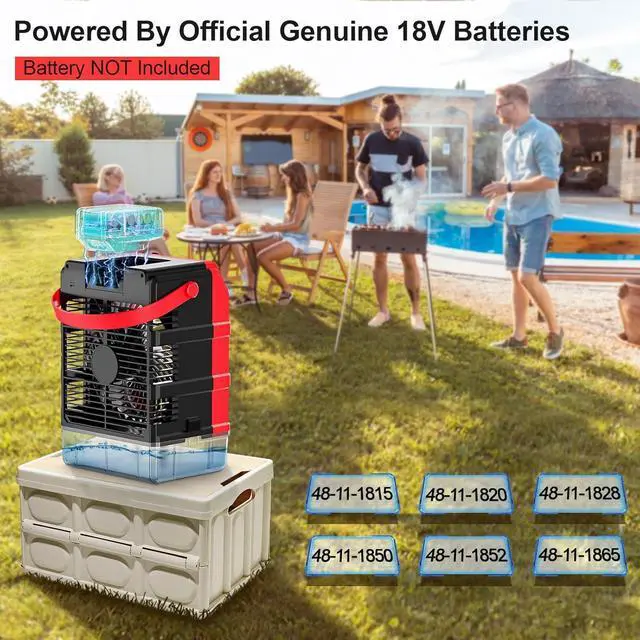 Innovative 2 Power Supply Options: TAIRDA misting fan can be powered by Official 18V Battery (NO Battery) and USB TYPE C Cable. When battery powered, the cordless misting fan is compatible with MWK Original 18v batteries such as: 48-11-1852 48-11-1865 48-11-1862 48-11-1850R 48-11-1880, etc. When TYPE C Cable powered, the electric mister fan is compatible with all USB-enabled devices (5V 2A or Above)