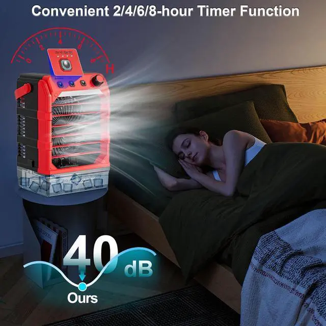 Ultra-Silent Running: With the brushless motor, the compact fan operates quietly between 40dB to 50dB, equivalent to the sound of a natural breeze. Whether in low gears or higher gears, the water misting fan is operating without disruptive noise, allowing you can enjoy the peaceful coolness